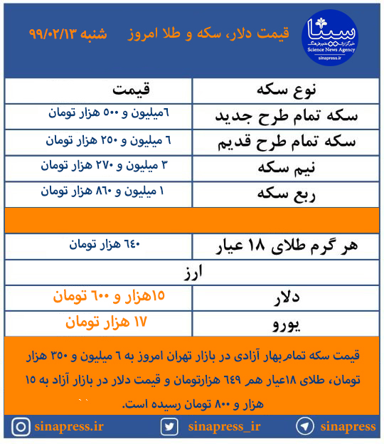 قیمت طلا،دلار،سکه و ارز در 13 اردیبهشت ماه