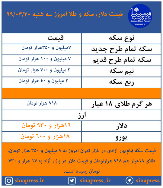 قیمت طلا،دلار،سکه و ارز در 20 خرداد ماه