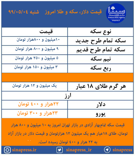قیمت طلا،دلار،سکه و ارز در 4 مرداد ماه