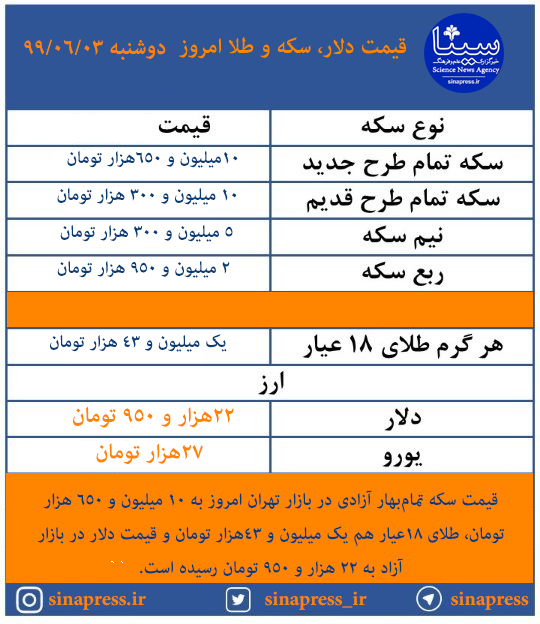 قیمت طلا،دلار،سکه و ارز در 3 شهریور ماه