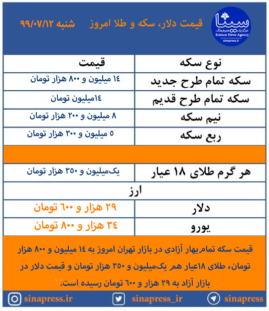 قیمت طلا،دلار،سکه و ارز در 12 مهر ماه