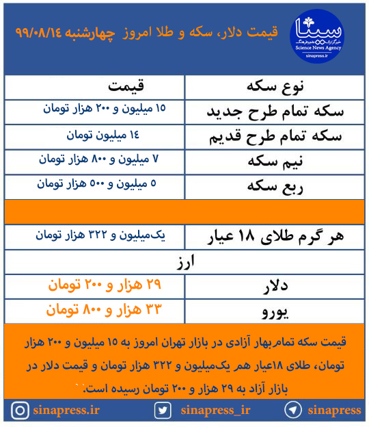 قیمت طلا،دلار،سکه و ارز در 14 آبان ماه