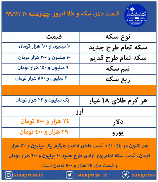 قیمت طلا،دلار،سکه و ارز در 20 اسفند ماه