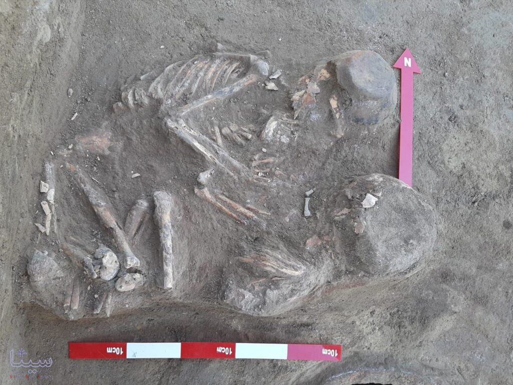 در این کاوش هشت قبر با ۱۴ اسکلت انسانی در محلی به مساحت تقریباً هشت متر مربع پیدا شده است. احتمالاً ، هفت مورد از آنها متعلق به کودکان ، سه مورد مربوط به نوجوانان و چهار اسکلت نیز متعلق به بزرگسالان است. در کنار این اسکلت ها بر اساس سنت های رایج در دوره نوسنگی، ابزار و آثاری همچون مهره های سنگی و زیورآلات استخوانی دفن شده بود.