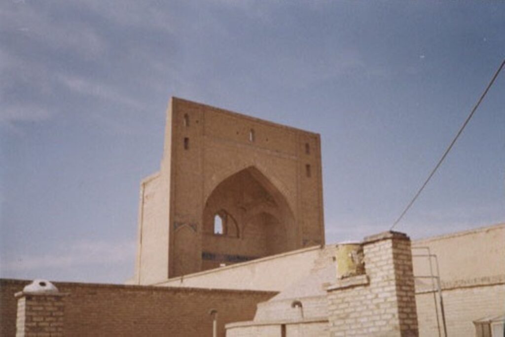 فضای روبه روی ایوان حیاط بزرگی با حجره هایی در طرفین آن است. محراب مسجد آجری و ساده است که در بالای آن تزئینات آجری به کار رفته ، این محراب در بخش زیر گنبد خانه قرار دارد .