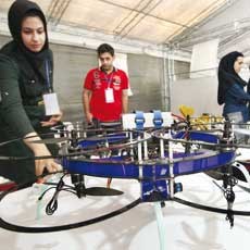 در بخش دیگری از این نمایشگاه، ربات پرنده چهار ملخی (کواد کوپتر) با طراحی خاص، نظر مخاطبان را جلب کرد. جمعی از دانشجویان گروه فنی ـ کشاورزی پردیس ابوریحان دانشگاه تهران زیر نظر استادان خود، ربات پرنده ای را برای کار در مزارع و باغ ها طراحی کرده بودند.