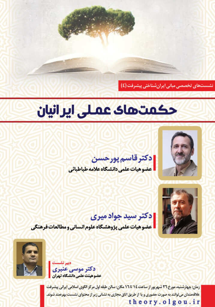 چهارمین نشست از سلسله نشستهای تخصصی مبانی ایرانشناختی پیشرفت با موضوع “حکمتهای عملی ایرانیان” برگزار میشود.