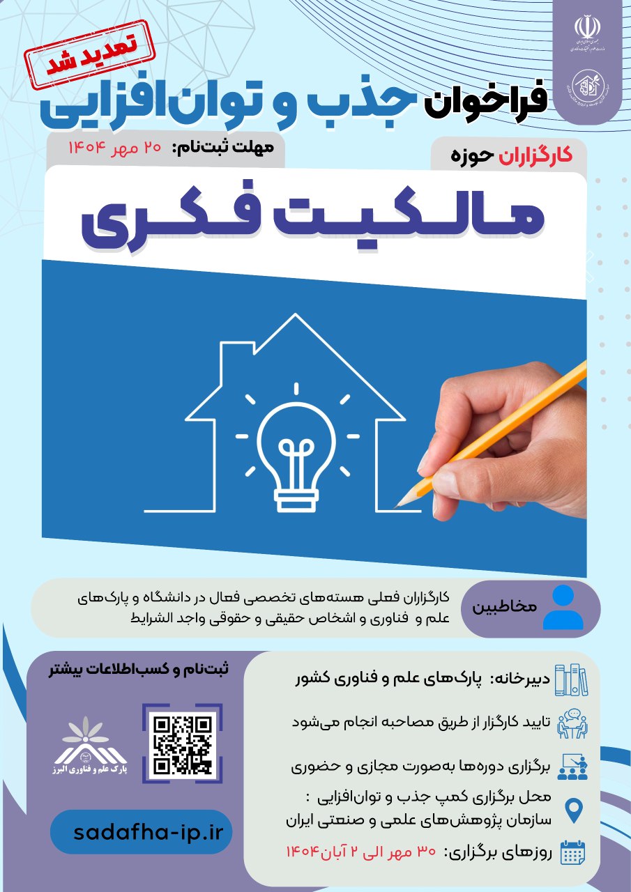 رئیس پارک علم و فناوری استان البرز در پایان تاکید کرد: کارگزاران آموزشدیده در این دورهها به عنوان نیروهای متخصص بخش خصوصی در سراسر کشور مستقر خواهند شد و خدمات تخصصی مالکیت فکری را به صورت حرفهای و پایدار در اختیار فناوران و نوآوران قرار خواهند داد.