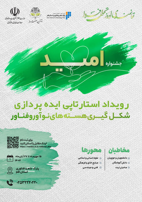 وی با اشاره به این‌که فراخوان ثبت نام گام دوم این رویداد در قم همزمان با بازگشایی دانشگاه‌ها و مراکز آموزشی پژوهشی آغاز شده است، بیان کرد: صاحبان ایده‌های خلاقانه کسب و کار در حوزه‌های علوم انسانی و اسلامی، صنایع خلاق و فرهنگی و فنی مهندسی از ۱۵ مهرماه تا ۲۷ آبان‌ماه مهلت دارند تا با مراجعه به سایت پارک علم و فناوری استان قم و یا معاونت فناوری و نوآوری وزارت علوم نسبت به ثبت ایده‌های خود و شرکت در این رویداد اقدام کنند.