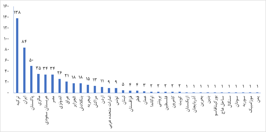 وضعیت سایر کشورهای اسلامی به لحاظ تعداد دانشگاههای حاضر در رتبهبندی در نمودار ۱ نشان داده شده است.