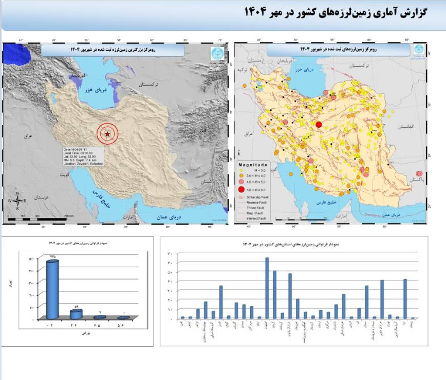 کاهش ۱۳.۷ درصدی زلزله‌های شهریور ۱۴۰۴ نسبت به پارسال