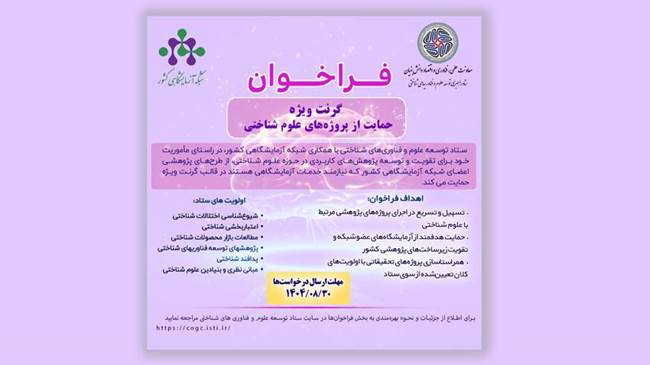 متقاضیان میتوانند فرم اولیه ثبتنام (پیوست) را از بخش فراخوان ها تکمیل کرده به همراه پروپوزال مصوب دانشگاه و گواهی کد اخلاق، در یک فایل PDF با نام «درخواست گرنت ویژه» حداکثر تا تاریخ 30 آبانماه به نشانی پست الکترونیکیpromotion@cogc.ir ارسال کنند.
