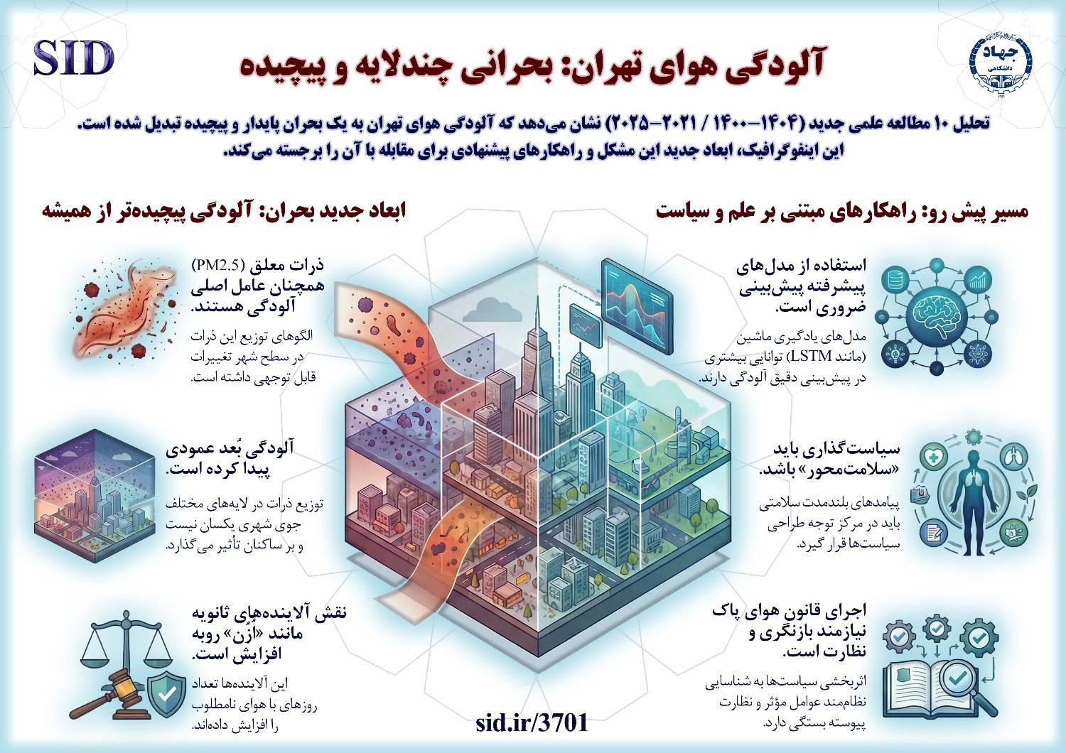 مجموعه مطالب منتشرشده در بازه پنجساله اخیر نشان میدهد که آلودگی هوای تهران نیازمند نگاه تلفیقی و بلندمدت است. یافتهها بیان میکند که ترکیب مدلهای پیشرفته پیشبینی، تحلیلهای سلامتمحور، سنجش عمودی آلایندهها و بازنگری در سیاستهای اجرایی، میتواند مسیر واقعبینانهتری برای مدیریت بحران آلودگی هوا در اختیار تصمیمگیران قرار دهد.