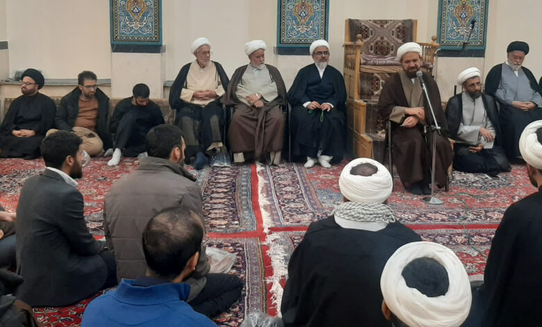 رئیس انجمن علمی انقلاب اسلامی با اشاره به موقعیت کنونی که شیعه در آن قرار دارد، ادامه داد: اینکه اکنون میتوانیم با خیال آسوده در مدرسه حضرت امیرالمؤمنین علیه السلام در کمال امنیت دور هم جمع شویم و پیاممان را به نام اهلبیت عصمت و طهارت علیهم السلام به کل دنیا منعکس کنیم – که همان اهتزاز پرچم ولایت اهلبیت علیهم السلام، در جهان است – حاصل فداکاری عالمان دین در طول تاریخ تشیّع است که ثمره آن در انقلاب اسلامی ایران در سال ۵۷ توسط بنیانگذار کبیر انقلاب اسلامی؛ حضرت امام خمینی(قدس سره) به سرانجام نشست.
