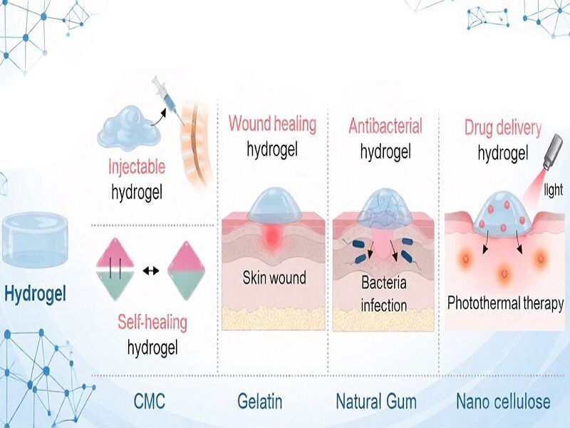 پانسمانهای رایج اغلب تنها نقش پوششی دارند و توانایی محدودی در مقابله با عفونت، التهاب و اختلالات ترمیمی نشان میدهند. در مقابل، هیدروژلهای زیستپایه میتوانند بهصورت فعال در فرآیند درمان مشارکت کنند و همزمان چند عملکرد کلیدی از جمله حفظ رطوبت، آزادسازی کنترلشده عوامل درمانی و مهار رشد باکتریها را بر عهده بگیرند.