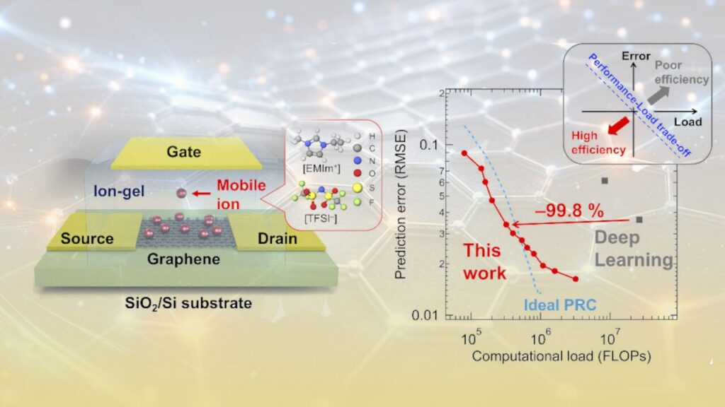 محققانی از مرکز علوم مواد ملی ژاپن (NIMS)، دانشگاه توکیو و دانشگاه کوبه موفق به توسعه یک دستگاه مبتنی بر ترانزیستور لایه دوگانه الکتریکی با ژل یونی و گرافن (Ion-Gel/Graphene Electric Double Layer, EDL) شدند که با عنوان Ion-Gating Reservoir (IGR) شناخته میشود. این دستگاه عملکرد محاسباتی بسیار بالایی ارائه میدهد که با یادگیری عمیق نرمافزاری قابل مقایسه است، در حالی که بار محاسباتی را به حدود یکصدم کاهش میدهد.