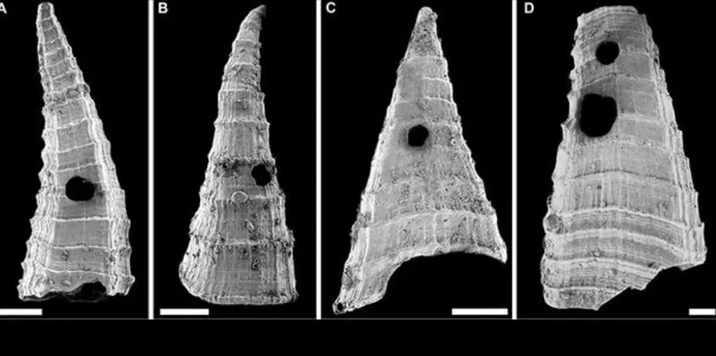 این دیوارههای محکمتر، میتوانسته نخستین نسخه شکارچیِ سوراخکن را که به گمان محققان نرمتن یا کرم بوده، دور نگه دارد و منجر به مشتهای قویتری شود که میتوانسته حداقل به برخی از دیوارههای سخت نفوذ کند. جالب است که اندازه سوراخها تغییر نکردند، یعنی کسی که آنها را سوراخ کرده، قدرتمندتر شده، اما بزرگتر نه!
