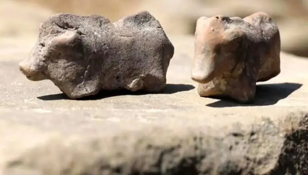 جدیدترین اکتشافات محققان محلی، دو تندیسه رس از گاو بود.