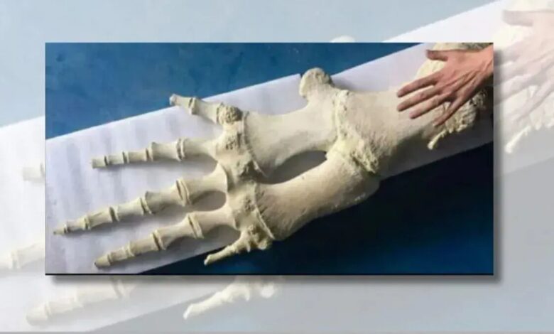 شباهت استخوان باله نهنگ به انگشتان دست انسان