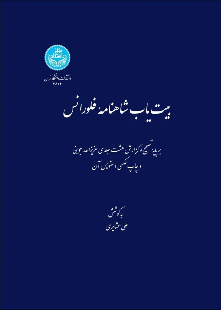کتاب «بیت‌یاب شاهنامه فلورانس برپایه تصحیح و گزارش هشت‌جلدی زنده‌یاد دکتر عزیزاللّه جوینی و چاپ عکسی دستنویس آن»، به‌کوشش علی عشایری، دانشجوی دکتری زبان و ادبیات فارسی دانشگاه تهران، توسط مؤسسۀ انتشارات دانشگاه تهران منتشر شد.
