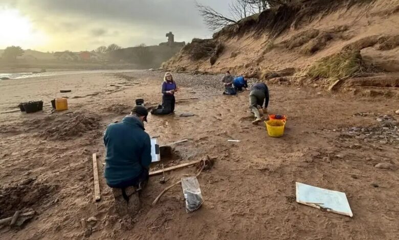 به گزارش خبرگزاری سیناپرس، دو دوست که برای پیاده‌روی با سگ‌هایشان در امتداد ساحل شرقی اسکاتلند بیرون رفته بودند، به‌طور غیرمنتظره به یک گنجینه باستان‌شناختی برخوردند. پس از آن‌که تندبادهایی با سرعتی تا ۵۵ مایل در ساعت، شن‌های تپه‌های ماسه‌ای ساحلی نزدیک منطقه آنگوس را کنار زد، ایوُر کَمپبِل و جِنی اسنِدِن (به همراه سگ‌هایشان، زیگی و جونو) فرورفتگی‌های منحصربه‌فردی را در لایه‌ای از گِلِ مدت‌ها خشک‌شده مشاهده کردند.