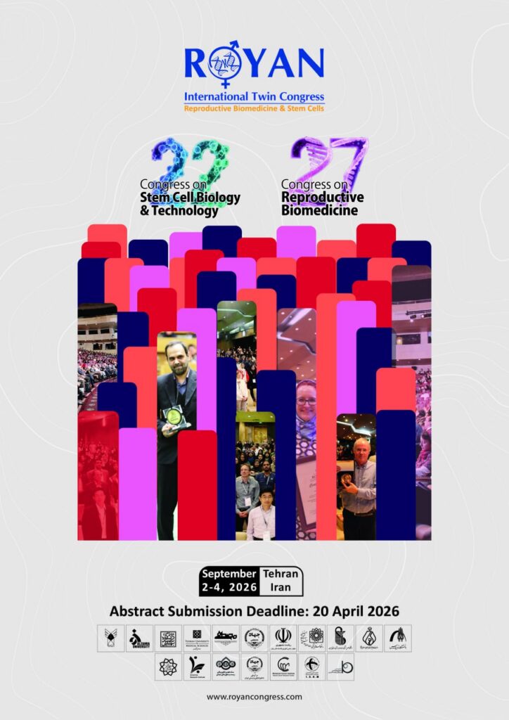بیست و هفتمین کنگره بین‌المللی پزشکی تولید مثل، بیست و دومین کنگره زیست‌شناسی و فناوری سلول‌های بنیادی و بیست و یکمین سمینار پرستاری مامایی، ۱۱ تا ۱۳ شهریور ماه ۱۴۰۵ توسط پژوهشگاه رویان جهاددانشگاهی در تالار ابوریحان دانشگاه شهید بهشتی شهر تهران برگزار می‌شود. علاقمندان می‌توانند چکیده مقاله‌های علمی خود را تا پایان فروردین ماه به دبیرخانه کنگره ارسال کنند.