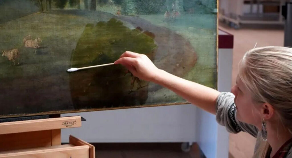 این کشف در آغاز یک پروژه مرمت یکساله انجام شد؛ پروژهای که در آن از روش بازتابنگاری مادونقرمز برای «نگاه کردن به زیر لایههای وارنیش، آلودگی و رنگهای مختلف» استفاده میشود تا تصویر اولیه نقاشی بررسی شود.