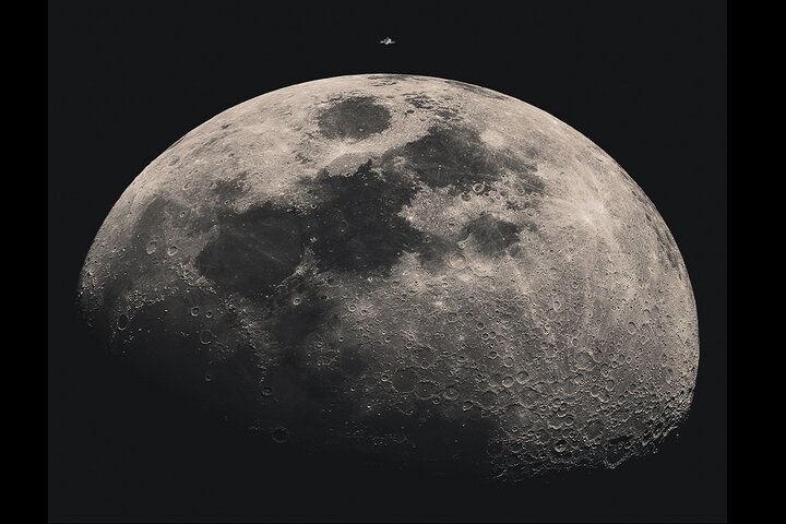 عکس روز ناسا ایستگاه فضایی بینالمللی را در حال رد شدن از بالای ماه به نمایش میگذارد.