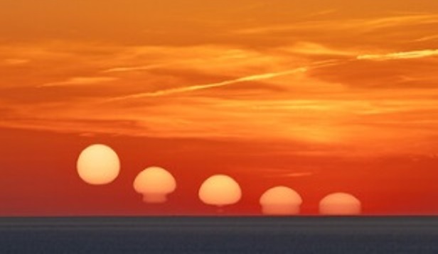 در واقع، در این عکس، خورشید در حال ذوب شدن نیست. ظاهر متغیر و سیال آن با نزدیک شدن به افق، ناشی از تغییر شکست نور در امتداد خط دید است و تصاویر یا سرابهای تحریفشدهای را از قرص سرخرنگ خورشید ایجاد میکند.