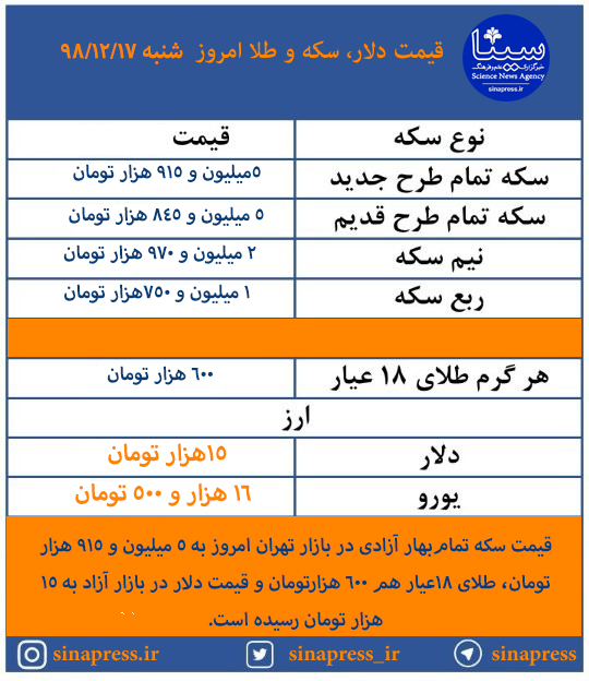 قیمت طلا،دلار،سکه و ارز در 17 اسفند ماه