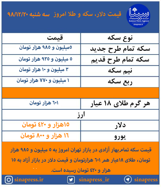 قیمت طلا،دلار،سکه و ارز در 20 اسفند ماه
