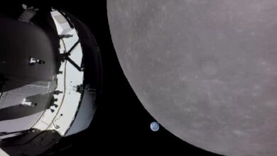 عکسی که با دوربین کپسول فضایی «اوریون» ثبت شده است، زمین را از فاصله دور به نمایش میگذارد.