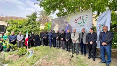 آیین کاشت نهال در قالب پویش «نهال امید، فرمان سبز برای ایران» به نیت شهدای جنگ تحمیلی در باغ طاووسیه شیراز برگزار شد.